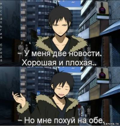 | Quote (RIKUDO) а название клевое ты нам придумаешь? Чьи-то воспоминания - итак звучит неплохо... Ну, вообще могу предложить несколько названий - навскидку... "Их память" - "Тем, кто знает в чём дело" - "О той самой, и том самом" - "Когда они...(тут вариации восклицательно-вопросительных знаков)" Quote (Neora-chan) Как Татсу напишет, так я сразу и смогу) У меня скоро каникулы на недельку, буду писать со страшной силой) так он уже неделю назад написал... уже 7 дней "Вампир" ждёт Вас... в этом-то и весь вопрос...